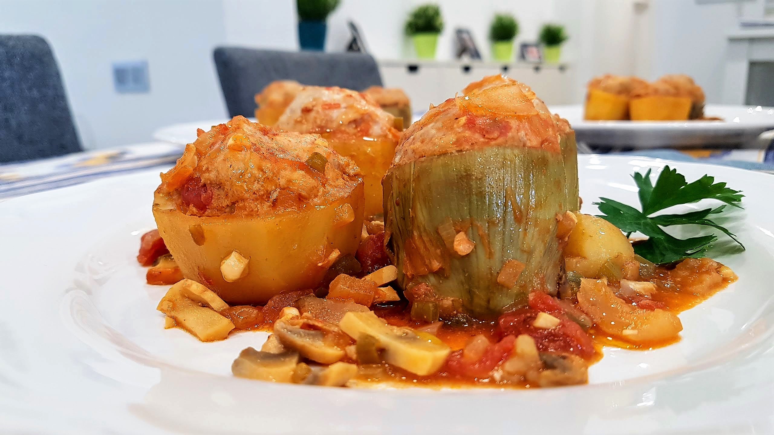 COCINASegundos Alcachofas y patatas rellenas marzo 6, 2019 Admin Alcachofas rellenas y patatas rellenas, todo en la misma receta. Todo en el mismo plato. No dudes en prepararlas porque están riquísimas y tu familia te lo agradecerá. Ensaladilla rusaPatatas aliñás de Cádiz