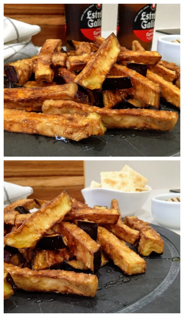COCINAEntrantes Berenjenas fritas con miel típicas de Andalucía septiembre 11, 2022 Pedro Berenjenas fritas con miel TÍPICAS ANDALUZAS una de las tapas más comunes en los bares y terrazas de toda Andalucía. Ingredientes: 1 berenjena grande, leche, sal, aceite de oliva o girasol, harina, miel de caña o de flores. Ensaladilla rusaPatatas aliñás de Cádiz