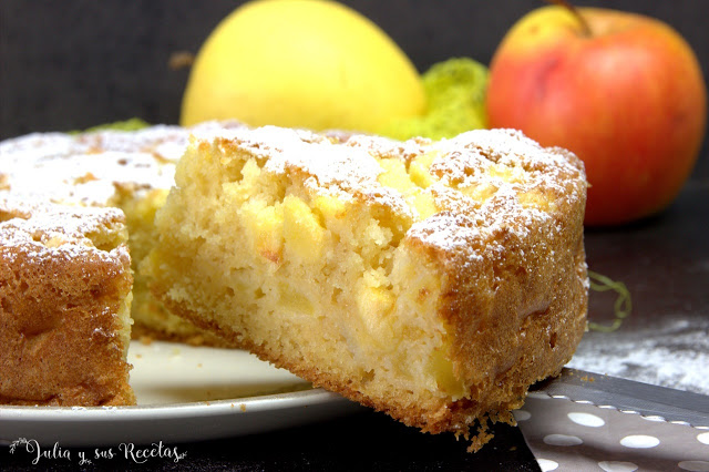 Bizcocho de manzana francés, con una textura muy especial, la del bizcocho y la de los trocitos de manzana que lleva y que seguro que os va a encantar. Te aseguro que es ideal para el fin de semana o para cualquier otra ocasión, y lo mismo vale para el postre como para un buen desayuno o merienda.