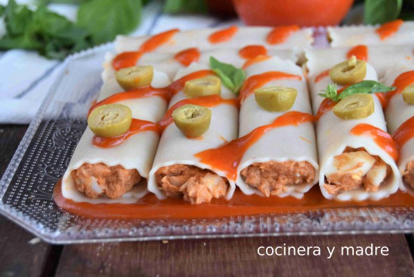 Cuando llega el calor apetecen platos frescos y fáciles, como estos canelones fríos de atún y tomate. Una pasta fría rellena de un mezcla infalible de atún, huevo, tomate,… se preparan en un momento y se comen bien fresquitos con lo que son perfectos para prepararlos con anterioridad