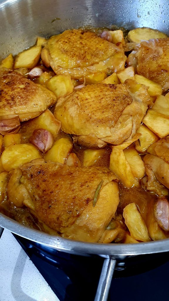 COCINASegundos Contramuslos de pollo a la cerveza marzo 21, 2023 Pedro CONTRAMUSLOS DE POLLO guisados a la cerveza. Ingredientes: 1ó 2 contramuslos de pollo por persona, 2 cebollas, 4 dientes de ajo, 200 ml de cerveza, 300 ml de caldo de carne, 1 limón. Aceite, sal, romero y pimienta. Ensaladilla rusaPatatas aliñás de Cádiz
