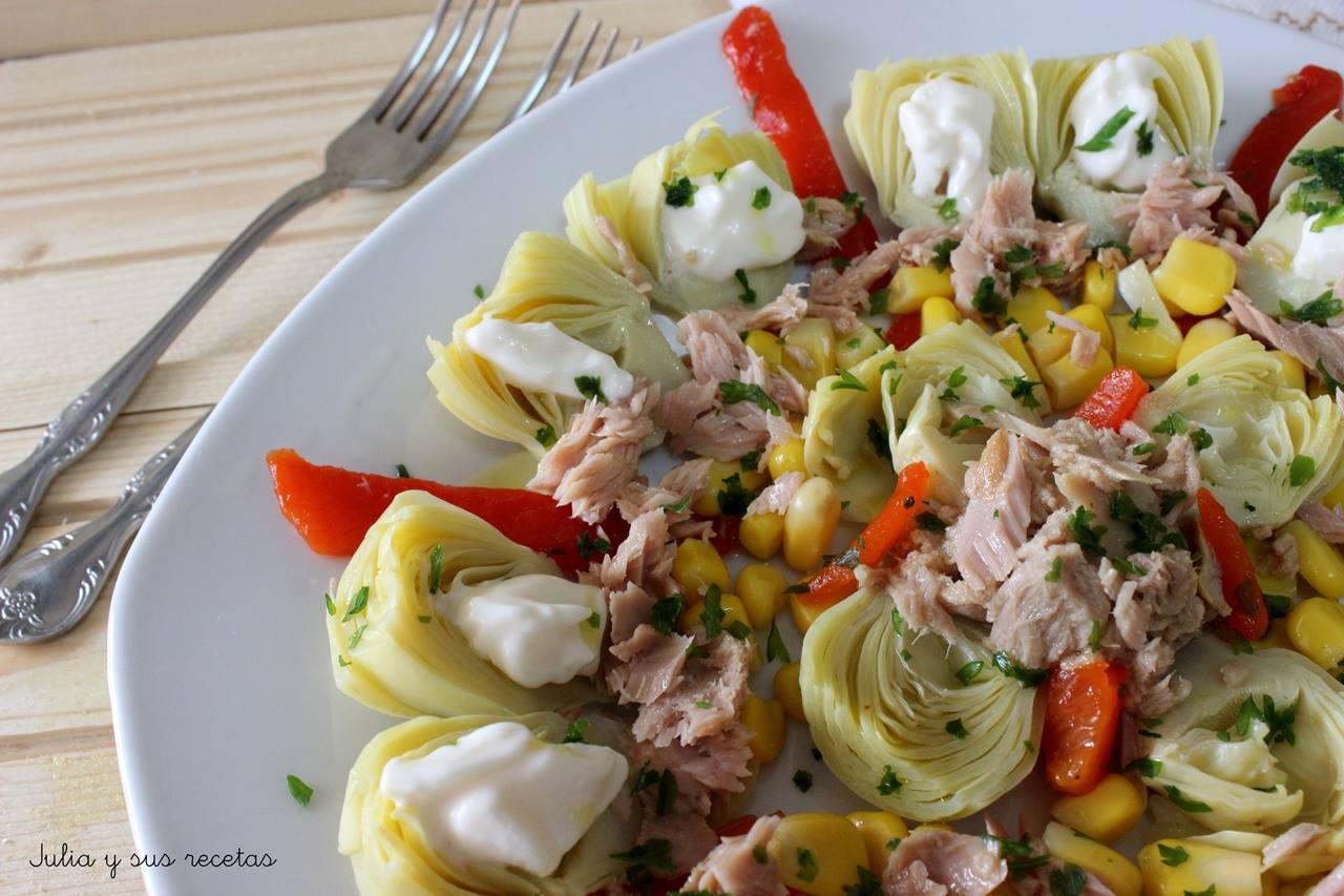 COCINAPrimeros Ensalada de alcachofas y atún julio 2, 2019 Admin Esta ensalada de alcachofas es muy fácil y rápida de hacer, solo es cuestión de tener en casa unas latas de alcachofas en conserva y poco más para poder hacerla… Ensaladilla rusaPatatas aliñás de Cádiz
