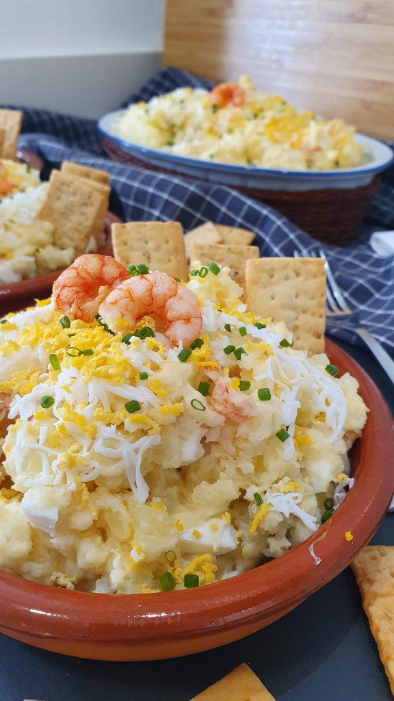 COCINAPrimeros Ensaladilla de gambas ESPECIAL NAVIDAD diciembre 4, 2022 Pedro Ensaladilla de gambas ESPECIAL NAVIDAD !!! Ingredientes: 1,2 kg de patatas, 4 huevos, 300 gr de gambas, 240 gr de mayonesa, aceite de oliva, aceitunas, cebollino, sal. Ensaladilla rusaPatatas aliñás de Cádiz
