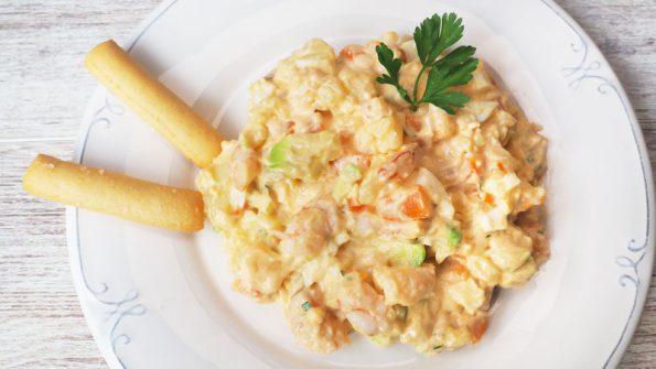 COCINAEntrantesPrimeros Ensaladilla de gambas y aguacate agosto 14, 2019 Admin Hoy preparamos una sencilla y sabrosa receta de ensaladilla, una idea perfecta como aperitivo para los días de verano, aunque en Andalucía la podemos encontrar como tapa en muchos bares en cualquier época del año: Ensaladilla con Gambas y Aguacate. Ensaladilla rusaPatatas aliñás de Cádiz