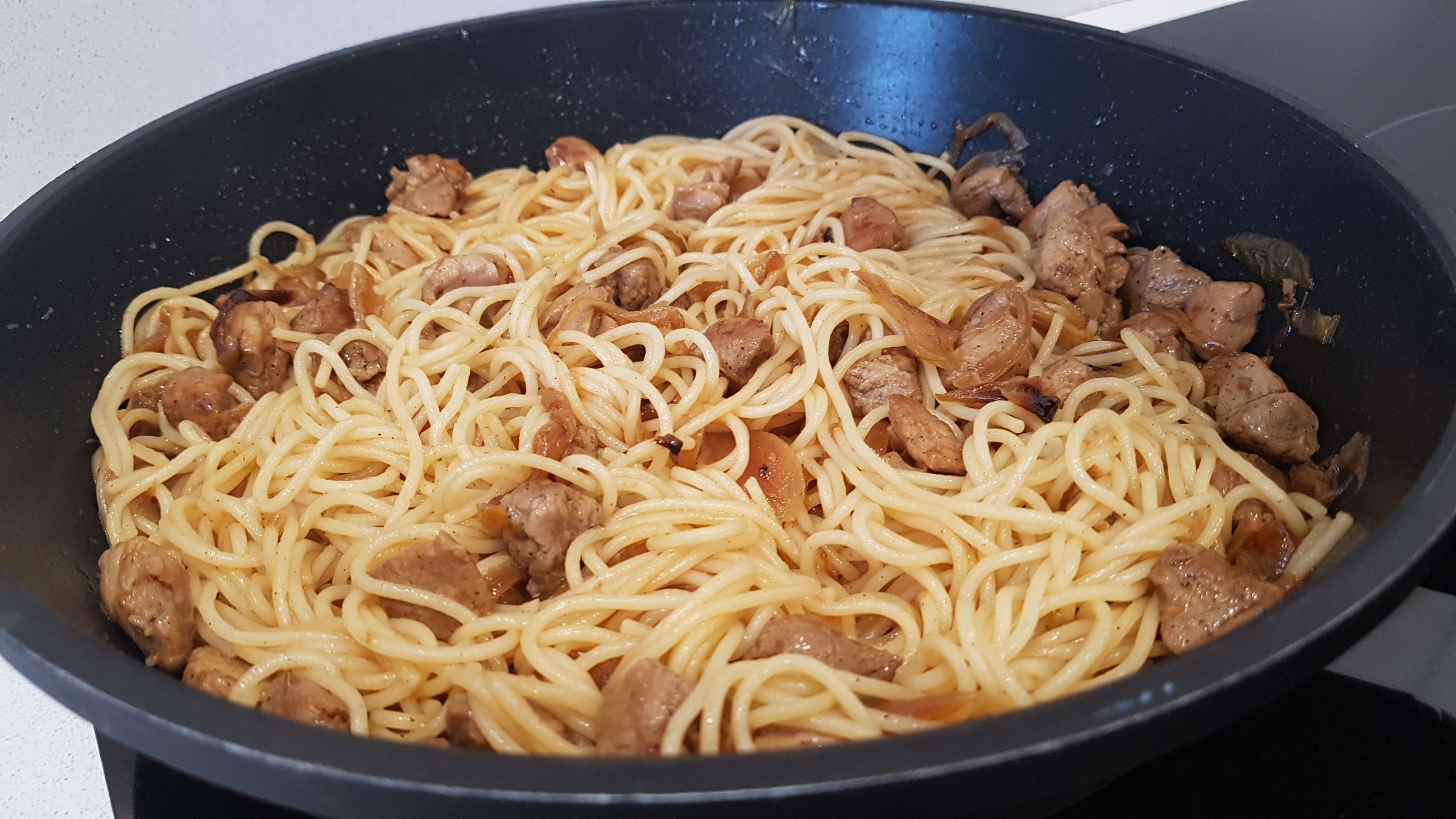 COCINAPrimeros Espaguetis con solomillo de cerdo en salsa de cebolla julio 29, 2019 Admin Ingredientes para cuatro personas: 400 gr. de solomillo de cerdo. 240 gr. de espaguetis. 2 cebollas. 50 gr. de mantequilla. 150 ml. de caldo de verduras o caldo de carne. Sal, pimienta y comino. Ensaladilla rusaPatatas aliñás de Cádiz