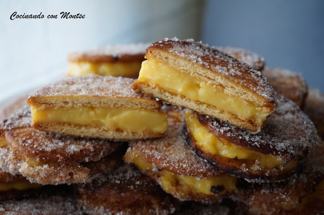 Galletas fritas rellenas de flan