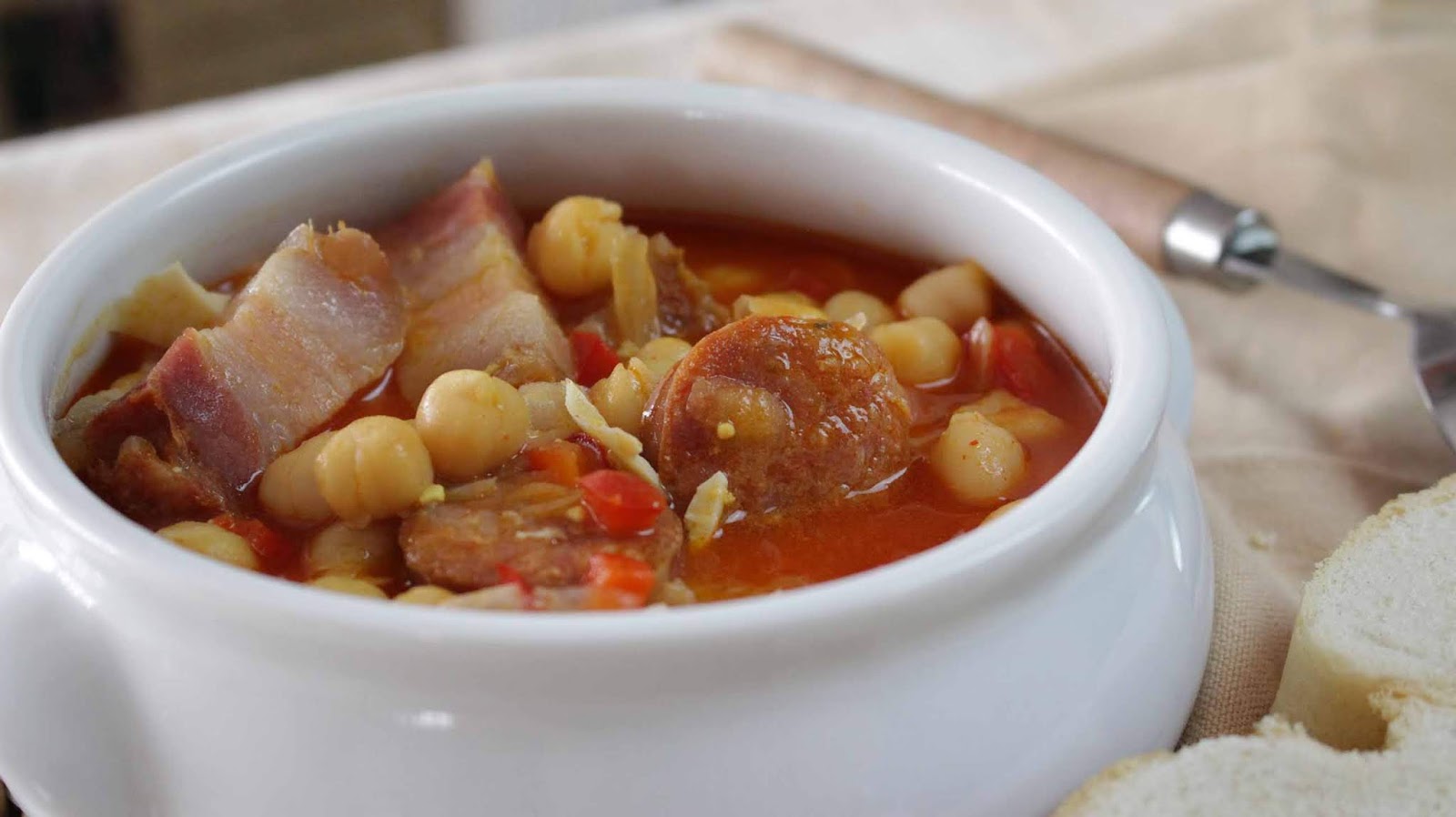 COCINAPrimeros Garbanzos a la riojana marzo 16, 2019 Admin Ingredientes: Garbanzos Cocidos (500 g.), Panceta (100 g.), Chorizo (1 Uds.), Caldo de Carne (500 ml.), ½ Cebolla, Ajos (2 Uds.), ¼ De Pimiento Rojo, Huevo Cocido (1 Uds.), Hojas de Laurel (2 Uds.), Harina (10 g.), Aceite, Sal y Pimentón (al gusto). Ensaladilla rusaPatatas aliñás de Cádiz