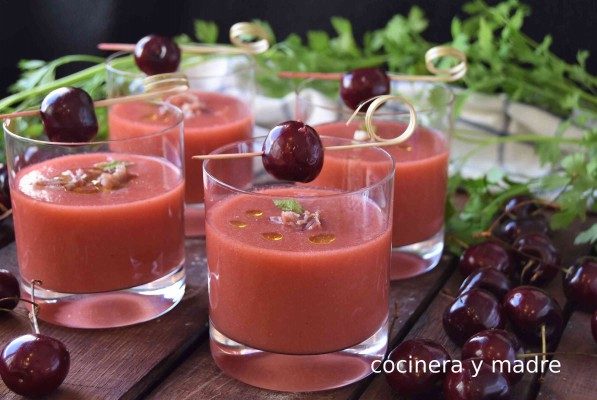 COCINAEntrantesPrimeros Gazpacho de cerezas junio 6, 2019 Admin Este gazpacho de cerezas casero y fácil es perfecto para este verano. Una receta muy sencilla y que se prepara en un momento. Es ideal para combatir el calor y disfrutar y un rico y apetecible entrante o primer plato estival. Ensaladilla rusaPatatas aliñás de Cádiz