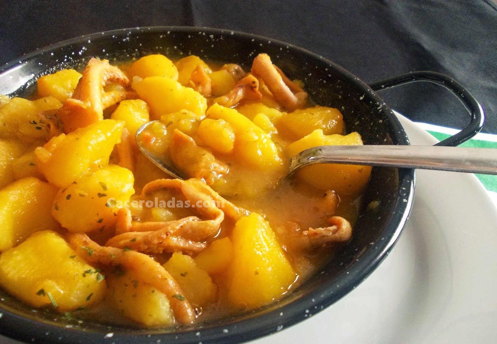 Receta fácil de patatas con calamares. Un guiso tradicional y muy sencillo con un sabor a mar que te encantará.