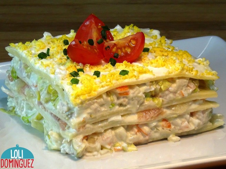 LASAÑA FRIA SIN HORNO. VERÁS LO FÁCIL Y RIQUÍSIMA QUE ESTÁ. Se puede dejar hecha con anterioridad ya que se come fría y nos puede servir como entrante o aperitivo en verano en esos días de calor que apetece comer algo fresquito, aunque se puede comer en cualquier época del año ya que esta riquísima. Es una receta muy sencilla y rápida de preparar, además de nutritiva y saludable.