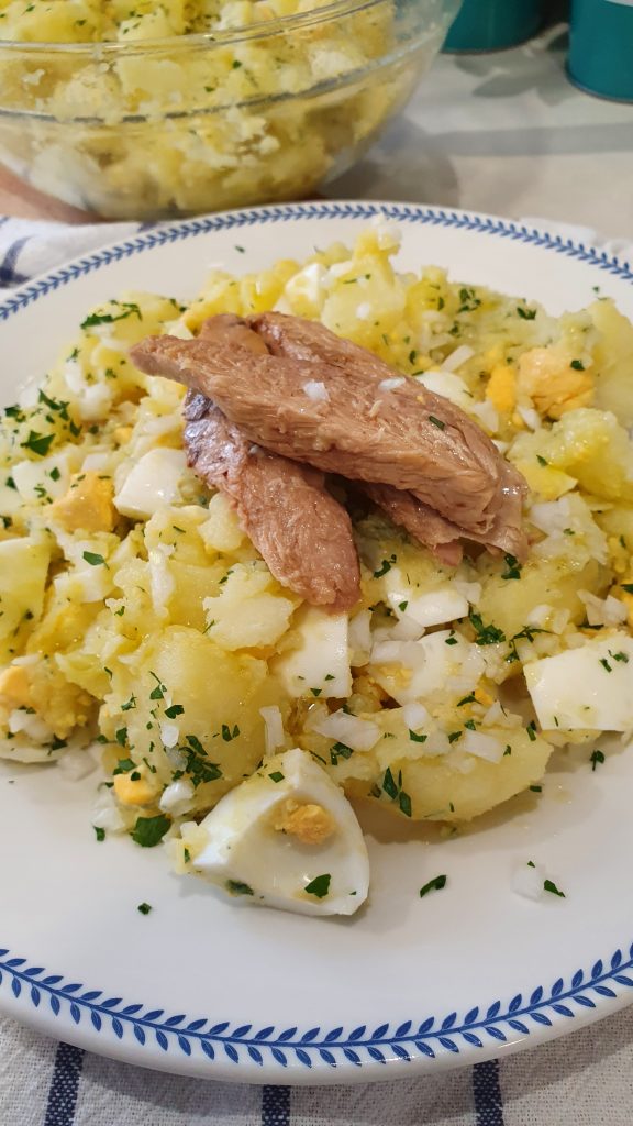 COCINAEntrantes Patatas aliñás típicas de Cádiz (con melva) junio 13, 2021 Pedro Patatas aliñás con melva típicas de Cádiz Ingredientes: 1 kg de patatas, 5 huevos, 1 cebolla, 2 latas pequeñas de Melva, Perejil, 100 ml aceite de oliva, 35 ml de vinagre, Sal gorda. Ensaladilla rusaPatatas aliñás de Cádiz