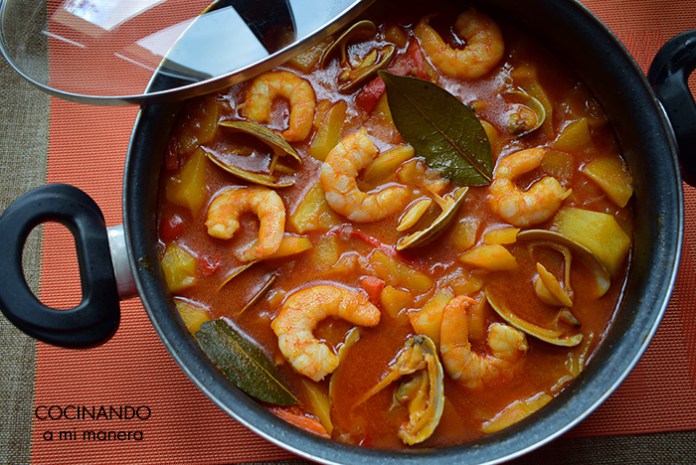 COCINAEntrantesPrimeros Patatas guisadas a la marinera enero 14, 2018 Pedro Cocinando a mi manera He preparado el guiso con langostinos y almejas, pero esta receta es perfecta para aprovechar los mariscos que van quedando ‘sueltos’ por el congelador, puedes hacerla con berberechos, mejillones, o con otros mariscos de tu gusto. Ensaladilla rusaPatatas aliñás de Cádiz