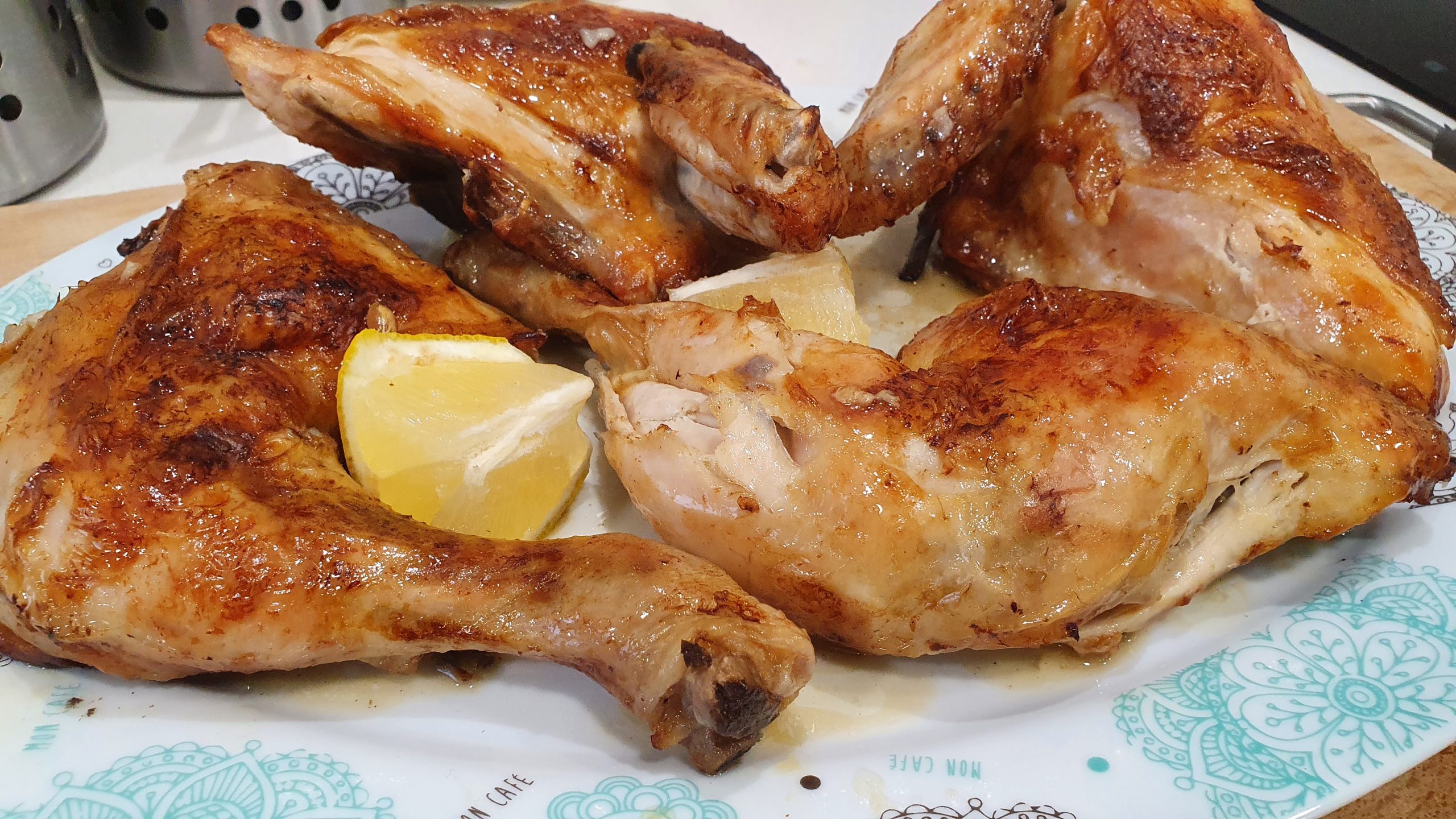 COCINASegundos Pollo asado al limón marzo 24, 2021 Pedro Pocos ingredientes y muchos sabor. Pollo asado al limón muy jugoso y sabroso. Ingredientes: 1 pollo, 1 limón, 200 ml. de vino blanco, aceite de oliva y sal. Ensaladilla rusaPatatas aliñás de Cádiz