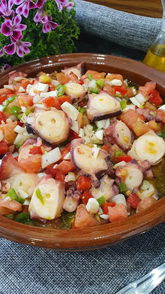 SALPICÓN DE PULPO – No te pierdas la mejor receta de salpicón !!! Ingredientes: 500 gr de pulpo cocido, 1/2 pimiento rojo, 1 pimiento verde, 1 cebolla tierna, 2 tomates, 2 huevos cocidos, 150 ml de aceite de oliva, 50 ml de vinagre de Jerez, Sal en escamas o sal gorda.
