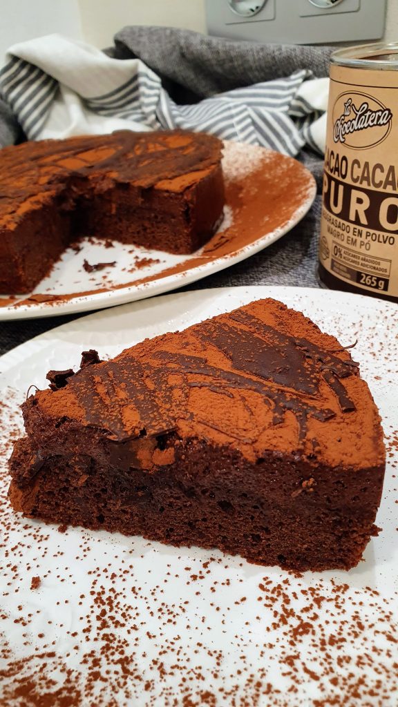 TARTA DE CHOCOLATE CLÁSICA. Ingredientes para el bizcocho de chocolate: 175 gr de harina, 2 huevos, 1 yogur natural (sin azúcar), 100 gr de azúcar, 100 ml de aceite de oliva suave, 40 g de cacao 100% puro en polvo, ½ sobre de levadura en polvo (8 gramos), 50 ml de leche, 8 gr de esencia de vainilla, 1 pizca de sal.