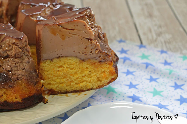Que delicia de postre! La mezcla de flan de chocolate con la tarta de zanahoria es absolutamente divina. Es una receta muy fácil, mezclar y poco más. Las capas de flan y de tarta de zanahoria no se mezclan en el proceso dando como resultado una delicia para el paladar.